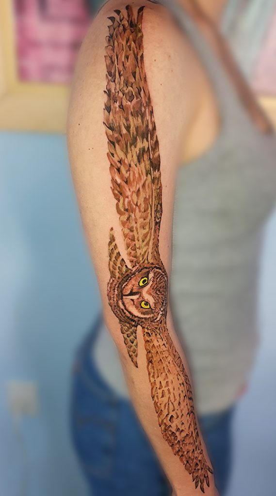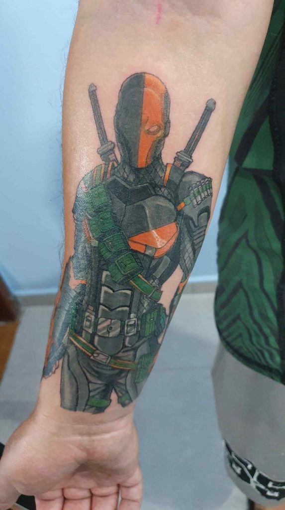 "Tinha duas tatuagens com mais de 15 anos apenas traçadas e não achava profissional que aceitasse reforma-las. A Areta aceitou o desafio, e o resultado final ficou muito top, adorei o trabalho dela! Vale muito apena. Votarei mais vezes pra fazer outras sem dúvidas. Vi seu trabalho com desenho realista e agora sei o porquê de tanto talento. Agradeço por me ajudar quando outros não queriam pegar a reforma. Obrigado Areta e muito sucesso... indico demais o Studio."